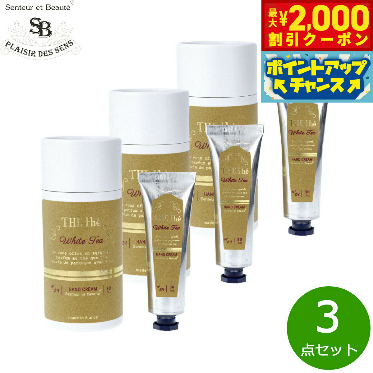 【2000円OFFクーポン!&店内ポイント最大51倍!本日限定!】Senteur et Beaute サンタール エ ボーテ ザ ティー ハンドクリーム ホワイトティー 30ml×3点【送料無料】