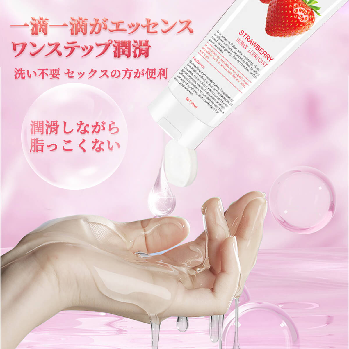 【クーポンで10%OFF】イチゴ味の潤滑ゼリー、舐められる潤滑ローション、水溶性ローション、潤滑剤ゼリー、イチゴ果実エキス贅沢配合、弱酸性 PHバランス、洗い不要 ローション、潤滑ジェル、 妊 活 ジェル 100ml【シートマスク 2枚プレゼント】