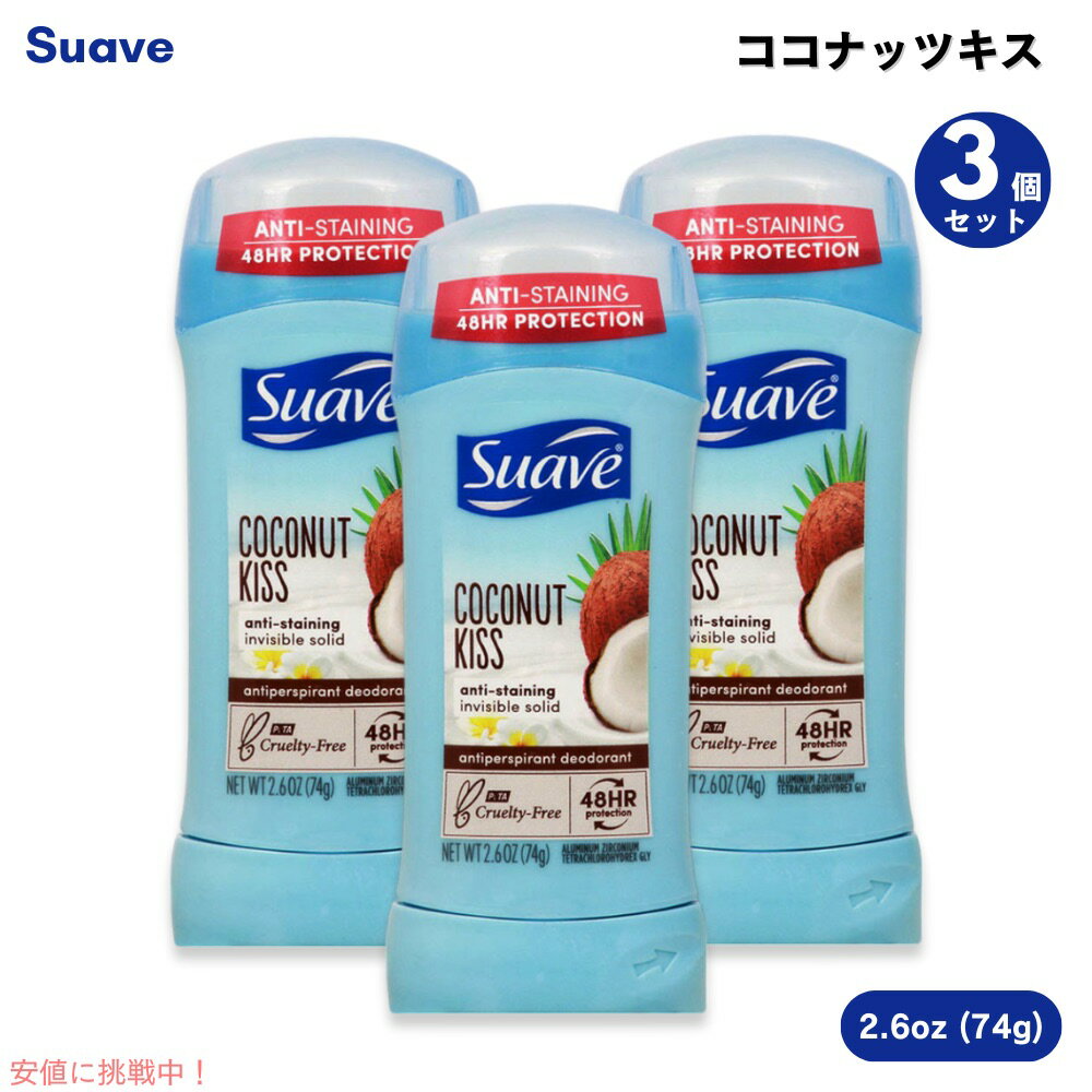 【3個セット】 Suave スエーヴ Coconut Kiss Deodorant for Womenココナッツ キス デオドラント 女性用 74g / 2.6oz