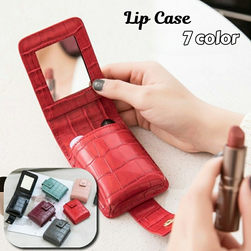 送料無料 リップケース ミラー付き 口紅ケース 収納ケース 鏡付き 化粧ポーチ 携帯 コンパクト 化粧品収納 小物収納 ミニメイクポーチ 化粧ケース レザー調 型押し風 高級感 エレガント 上品 おしゃれ かわいい レディース 女性 婦人 雑貨 お出かけ用 プレゼント ギフト
