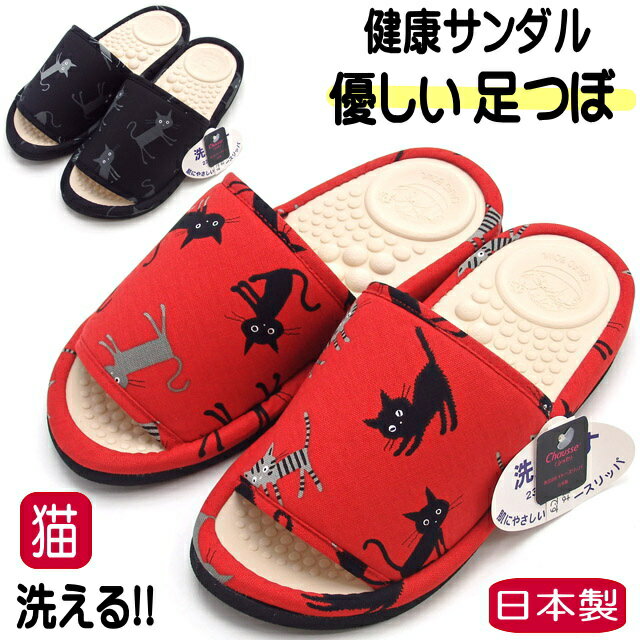 【10%クーポン 27日1:59まで】 スリッパ 猫 足つぼ レディース 健康サンダル オフィス サンダル サラダボール アニマル 日本製 ねこ ネコ 猫好き 猫柄 猫雑貨 猫グッズ 女性 かわいい おしゃれ ギフト プレゼント 【 誕生日 】