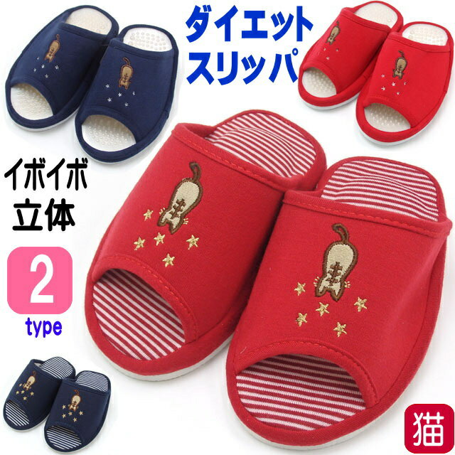 【200円クーポン 配布中】 ダイエットスリッパ 猫 共中 ヘルス中 健康スリッパ 足つぼ ツボ押し アニマル イボイボ ストライプ オールシーズン ルームシューズ 室内履き 猫柄 猫雑貨 猫グッズ 女性 レディース かわいい おしゃれ 【 誕生日 】