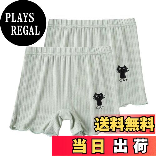 【送料無料】[VIISEN] 女の子 ガールズ 無地 2枚セット 3分丈 半ズボン 猫柄 キッズ インナーパンツ 100-160 アンダーパンツ 下着 オーバーパンツ 女児 ショートパンツ 短パンツ 色:1-グリーン、サイズ:130