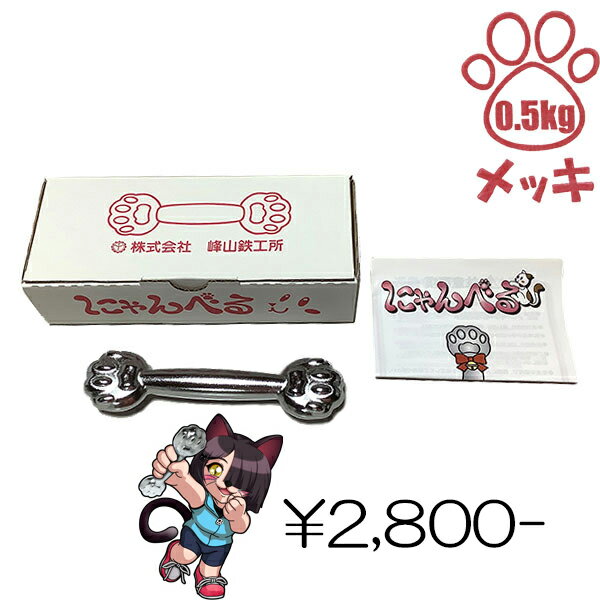 「にゃんべる」でダンベル体操 楽しく運動を習慣に。 インテリアにもなじむかわいいダンベルです。 かわいい猫の手ダンベル「にゃんべる」で 楽しくエクササイズしませんか。 基礎代謝を上げるダンベル体操は体作りに 効果的だと言われています。 Q&A ダンベル体操ってどういうもの? ダンベル体操は、筋肉量を少しずつ増やすことで基礎代謝を上げ、 脂肪が燃焼しやすい体質に変えることを目的とした体操です。 天候に左右されず、室内で手軽にできる効果的なダイエットとして人気です。 引き締まるのは上半身だけ? いいえ。ダンベル体操のトレーニングでは全身の脂肪が均一に燃焼します。 いつ運動すればいいの? 食前、または食後なら2~3時間後に運動すると脂肪燃焼に 効果的です。極度の空腹時や早朝起き掛けの運動は避けましょう。 重さ選びの目安は? 一般的には女性で1キロ前後、男性で3キロ前後の重さのもので 開始し、だんだん楽にできるようになったらダンベルの重さを 増やすとよいでしょう。 (ダンベルの重さ選びの目安は、各運動が無理せずに10~15回連続で行える重さです。) 色:メッキ(メッキタイプ) 重量:500g************************************** **************************************