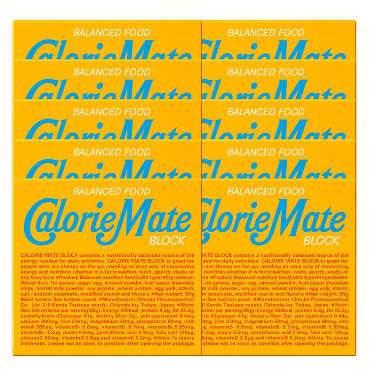 身体に必要な11種類のビタミン、5種類のミネラル、タンパク質、脂質、糖質を手軽に補給できるバランス栄養食です。ビタミンは1日に必要な量の約半分が含まれています。(*1日に必要な量は「2015年栄養素等表示基準値」をもとにしています)●内容量80g(4本)×10【チーズ味】●原材料小麦粉(国内製造)、マーガリン(乳成分を含む)、砂糖、ナチュラルチーズ、卵、アーモンド、でん粉、脱脂粉乳、大豆タンパク、小麦タンパク、食塩/カゼインナトリウム、加工でん粉、香料、カロチノイド色素【フルーツ味】●原材料小麦粉(国内製造)、マーガリン、砂糖、卵、レモンピール加工品、アーモンド、グレープフルーツパウダー、脱脂粉乳、大豆タンパク、小麦タンパク、でん粉、食塩/カゼインナトリウム、加工でん粉、香料、ナリンジン、カロチノイド色素【チョコレート味】原材料小麦粉(国内製造)、チョコレートスプレッド、砂糖、卵、アーモンド、脱脂粉乳、大豆タンパク、小麦タンパク、食塩、でん粉/カゼインナトリウム、加工でん粉、香料【メープル味】●原材料小麦粉(国内製造)、風味ファットスプレッド(乳成分を含む)、砂糖、卵、アーモンド、脱脂粉乳、大豆タンパク、小麦タンパク、オレンジ加工品、でん粉、食塩/カゼインナトリウム、加工でん粉、香料【プレーン味】原材料小麦粉(国内製造)、風味ファットスプレッド(乳成分、ゼラチンを含む)、砂糖、りんご加工品、卵、アーモンド、脱脂粉乳、大豆タンパク、小麦タンパク、でん粉、食塩/カゼインナトリウム、加工でん粉、香料、カロチノイド色素※各種成分については公式サイトをご確認下さい。○広告文責:e-net shop株式会社(03-6706-4521)○メーカー(製造):大塚製薬株式会社○区分:健康食品(検索用:防災 カロリーメイト チーズ バランス 朝食 五大栄養素 受験生 間食 非常食 4987035090113) 最強翌日配送対象商品に関するご案内 最強翌日配送対象商品・対象地域に該当する場合は最強翌日配送マークがご注文カゴ近くに表示されます。 最強翌日配送可能なお支払方法は【クレジットカード、代金引換、全額ポイント支払い】のみとなります。 下記の場合は最強翌日配送対象外となります。 ・15点以上ご購入いただいた場合 ・時間指定がある場合 ・ご注文時備考欄にご記入がある場合 ・決済処理にお時間を頂戴する場合 ・郵便番号や住所に誤りがある場合 ・最強翌日配送対象外の商品とご一緒にご注文いただいた場合 ・お届け先住所文字数が40文字以上の場合お届け先が沖縄・離島の場合、お届け日時のご希望に沿えない場合がございます。予めご了承ください。 ご注文前のよくある質問についてご確認下さい[ FAQ ]