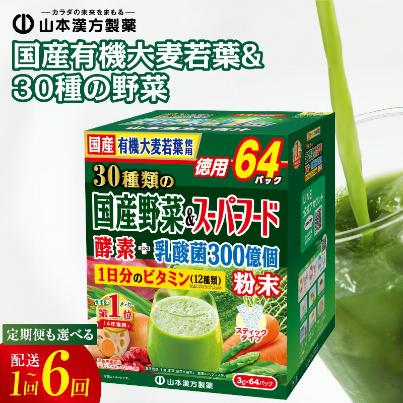 【ふるさと納税】ドラッグストア 売上No.1 青汁 大麦若葉 3g × 64包 1箱 選べる 単品 定期便 スティック 個包装 山本漢方 粉末 国産 30種の野菜 九州産 野菜 酵素 スーパーフード マルチビタミン 乳酸菌 YK-1 黒糖 美味しい 飲みやすい 健康習慣 愛知県 小牧市 送料無料