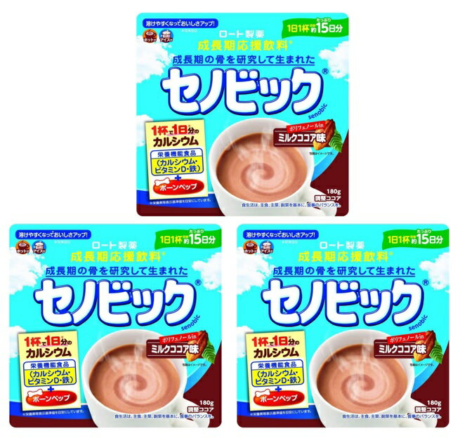 【×3袋セット送料込】ロート製薬 セノビック ミルクココア味 約15日分 180g 成長期応援飲料