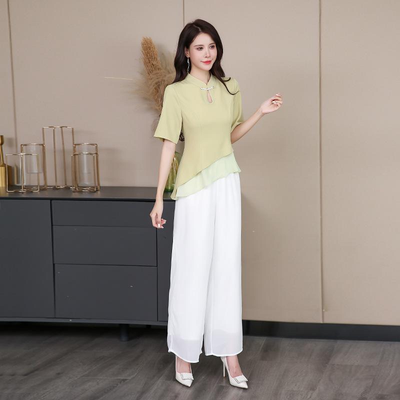 サイズ: S.M.L.XL.2XL.3XL.4XL.5XL スタイル: エレガント ネックライン: Vネック カラー: グリーンショートセット.ブルーショートセット.グリーンロングセット.ブルーロングセット セット内容: 2点セット 袖丈: 七分袖 デザイン: セットアップ 素材: ポリエステル