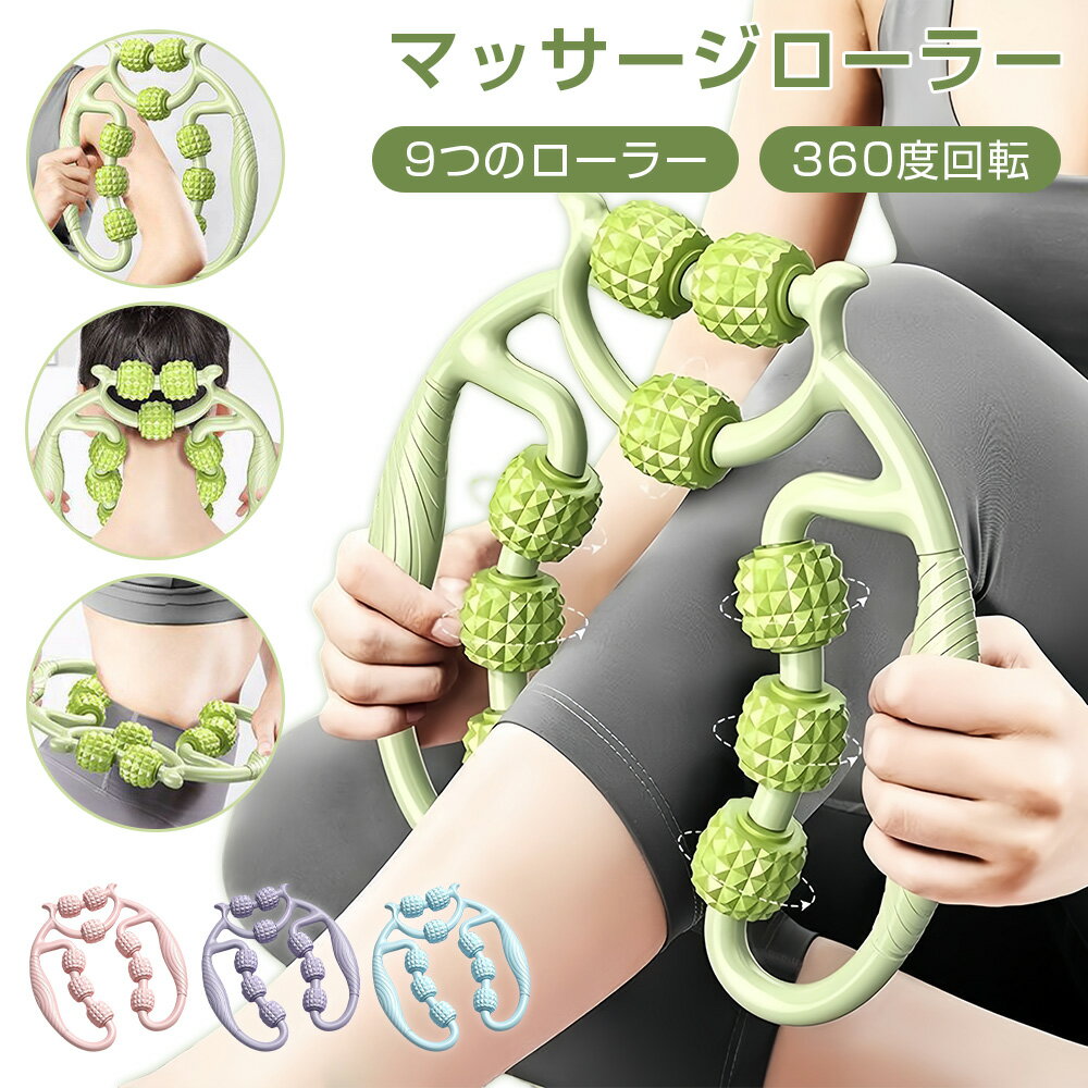 ★1540円★ マッサージローラー マッサージ 360度回転 9つのローラー手持ち マッサージスティック 筋膜ローラー 太もも 足 首 背中 腕 指 マッサージ 器 足痩せ 脚痩せ 二の腕 美脚 挟む式 フォームローラー 筋膜 ふくらはぎ 筋膜リリース 自宅 ケア スポーツ クリスマス