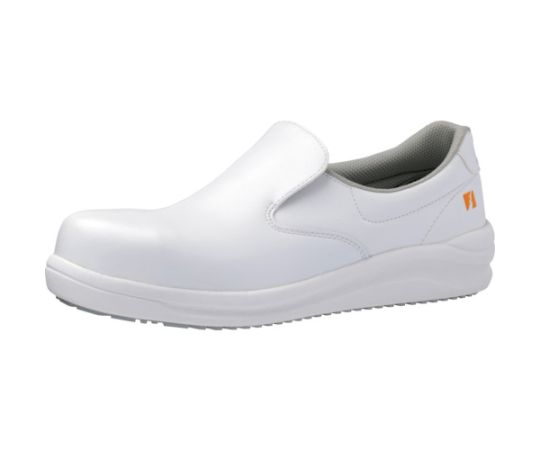 ●水や油の付着した床面でも滑りにくいハイグリップ底を採用。また、グレーチングなどの非常に滑りやすい金属面もしっかりグリップします。靴底意匠にはすり減りによる交換の目安が分かる「スリップサイン」付きです。●軽量な圧縮EVAソールや甲被を採用し、両足で380gの超軽量設計を実現しました。軽いので長時間の業務でも足へかかる負担を軽減します。(※標準重量26.0cmの場合)●クッション性に優れた素材を使用し、足にかかる衝撃を軽減します。●滑りにくい秘密は、特殊な配合を施した材料とスリップを起こしにくい靴底意匠とそれを支える補強構造のトリプル効果で、安全靴・作業靴技術指針で定められた耐滑性能の最高区分5を実現しています。さらに、詰まりにくい意匠を採用、靴底詰まりによる耐滑性の低下防ぎます。●カーペットでつまずきにくい●取り外し可能なインソール●フロアで履きやすいデザイン●※つま先保護性能(先芯装備)はありません。●※屋外でのご使用には、適さない場合(靴底の消耗を早める等)があります。●先芯:なし●甲被:人工皮革●中敷:EVAカップインソール(抗菌・防臭)●靴底:圧縮EVAスポンジ●標準重量:380g/足 ※両足での重さです ※標準重量は、26.0cmを基準としています●スリップサイン搭載