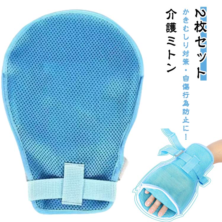 かきむしり防止手袋 介護ミトン 手袋 【2枚セット】 左右兼用 介護手袋 掻きむしり防止 自傷 抜管 防止 介護用手袋 介護手袋 メッシュ 経鼻栄養 アトピー グローブ ミトン 認知症 保護 固定手袋 大人 子供 介護グローブ ファスナー付き 介護用品 高齢者 送料無料
