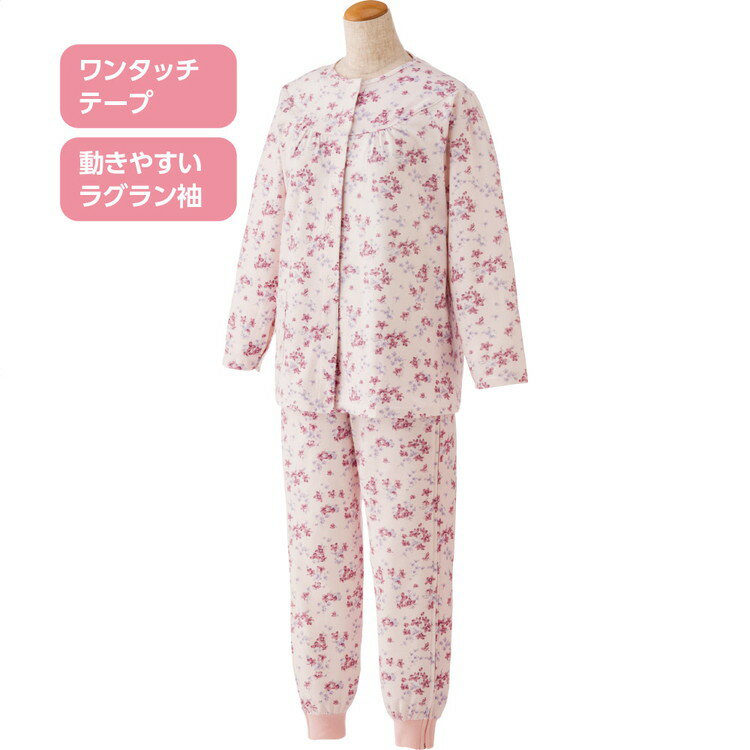 ブラックフライデー開催中!温活アイテム、冬の寒さ対策に、日用品や介護用品をお得にご購入いただけるチャンスです。人気のファッションアイテムも忘れずに!ブラックフライデー期間限定で特別にお得に買えるチャンスがあります。 ●適応サイズ目安/(対応バスト)S:72〜80cm・M:79〜87cm・L:86〜94cm・LL:93〜101cm、(対応ウエスト)S:58〜64cm・M:64〜70cm・L:69〜77cm・LL:77〜85cm、(対応ヒップ)S:82〜90cm・M:87〜95cm・L:92〜100cm・LL:97〜105cm●素材/綿100%、スムース●生産国/中国●洗濯機可●抗菌防臭加工●ワンタッチテープ●フルオープンファスナー●動きやすいラグラン袖●ウエストバンド付き●通年用●婦人用 ・ゆったり仕立てのトップと両脇ファスナーパンツで着替えやすさ抜群。・点滴に便利なワンタッチテープです。・ワンタッチテープ+飾りボタンで、見た目は普通のパジャマですが、着替えや検温時の開閉が簡単です。・上から開閉できるフルオープンファスナーです。オムツ交換や着替えがラクにできます。・ウエストバンド付きなので、立ったままオムツやパッド交換してもズレません。・ゆったり脇マチ仕様。・パンツがめくり上がらないリブ付き。・肩が動かしやすく、袖ぐりにゆとりが出るためラクに腕が通ります。※柄は若干変更になる場合もございます。 【ケアファッション】