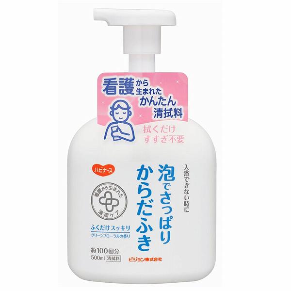 ハビナース 泡でさっぱりからだふき 500ml 弱酸性 グリーンフローラルの香り 約100回分 すすぎ不要 植物性保湿成分配合(ピジョンタタヒラ)