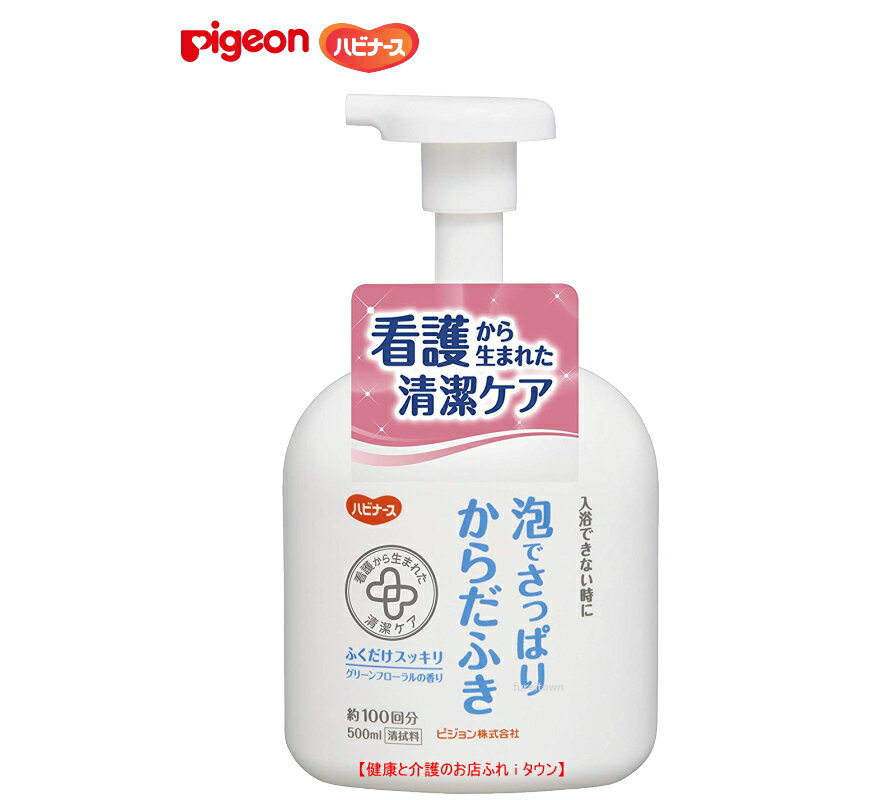 ピジョン ハビナース 1018702/11045 泡でさっぱりからだふき 500mL 清拭料泡タイプ ・泡だからすぐに使えて、部分清拭にも便利です。 グリーンフローラルの香り 介護 入浴 清拭剤 介護 福祉 サービス 高齢 者 デイ サービス シニア 災害時用備品 入浴できない 避難所