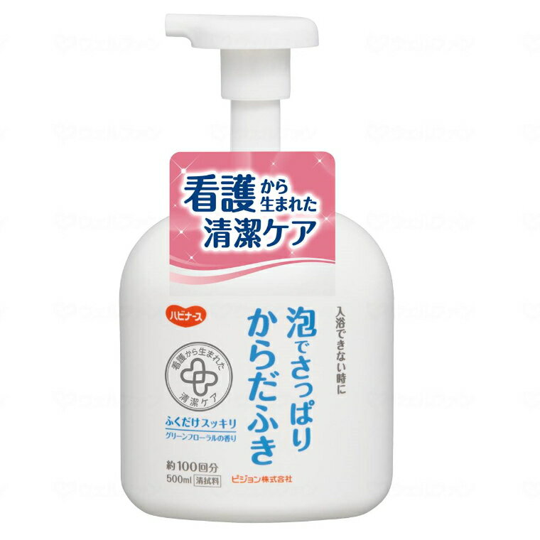 【2個セット】 ハビナース 泡でさっぱりからだふき グリーンフローラルの香り 500mL さっぱり 拘縮 ポンプタイプ 撥水 避難所 施設 スキンバリアクリーム 高齢者 衛生用品 手軽 高齢 介護施設 清潔 清拭剤 衛生 泡タイプ 拭くだけ 保湿 寝たきり
