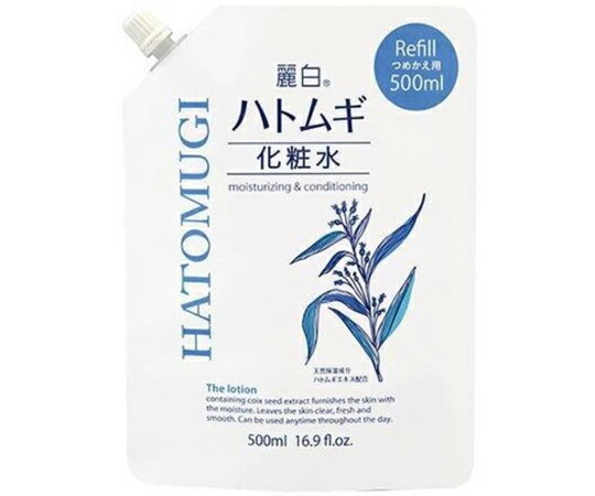 熊野油脂 麗白 ハトムギ化粧水 詰替 500mL 1個●天然保湿成分ハトムギエキス配合。毎日使えてお肌ぷるぷる透き通るようなみずみずしい素肌へ。●ハトムギの美肌効果で美しく透き通るようなお肌に導きます。●かさつきがちなお肌にもたっぷりうるおいを補給。みずみずしくキメ細かいお肌に整えます。●大容量なので、お風呂上がりなど全身にたっぷりとお使いいただけます。●お肌にやさしい弱酸性・無着色・無鉱物油。●内容量:500ml●サイズ:幅160mm×奥行70mm×高さ215mm●成分:水 グリセリン DPG メチルグルセスー10 PEG/PPG/ポリブチレングリコ-ル-8/5/3グリセリン BG ヒアルロン酸Na ハトムギ種子エキス グリチルリチン酸2K キサンタンガム(スチレン/アクリレ-ツ)コポリマー PEG-60水添ヒマシ油 クエン酸 クエン酸Na フェノキシエタノール メチルパラベン プロピルパラベン