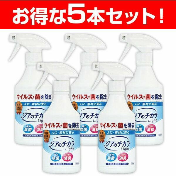 【即納在庫品】5本セット ジアのチカラLight 80ppm 500ml 消毒 除菌スプレー 500ml 弱酸性次亜塩素酸 ノンアルコール 除菌水 除菌水次亜水 ジア水 ウイルス対策 花粉対策 菌 風邪 除菌スプレー 日本製 4560108483113
