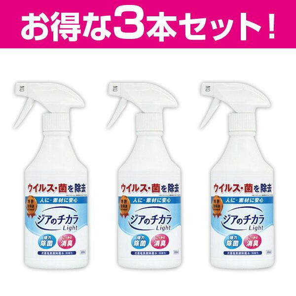 【即納在庫品】3本セット ジアのチカラLight 80ppm 500ml 消毒 除菌スプレー 500ml 弱酸性次亜塩素酸 ノンアルコール 除菌水 除菌水次亜水 ジア水 ウイルス対策 花粉対策 菌 風邪 除菌スプレー 日本製 4560108483113