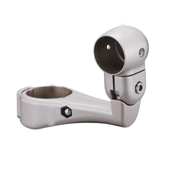 ※一部の直送品に関しまして、北海道・沖縄県・離島への発送をお受けできない場合がございます。誠に恐れ入りますが、当店にてご注文をキャンセルさせていただく場合がございますので、予めご了承下さい。ブラケット上の上で手すり棒の接続が可能です。 首振りで45°までの角度調節が可能です。 材質:亜鉛合金、ABS樹脂 色:ブラウン(BD-63B)(040-5090)、ゴールド(BD-63G)(040-5091)、シルバー(BD-63S)(040-5092) ねじ付(壁取付用+4×40 3本、手すり取付用+3.5×20 2本、リング取付用+3.5×20 2本) 六角棒スパナ(呼び2.5)付 ※ロングスパン1400はご使用いただけません。