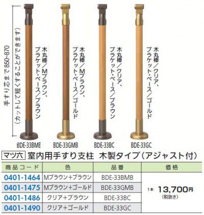 FR マツ六 BDE-33 室内用手すり支柱木製タイプ(アジャスト付) BAUHAUS