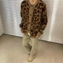 ニットカーディガン メンズ ヒョウ柄 秋冬 美品 メラード スタイル アメカジ ストリート 長袖 普段使い 伸縮性 鹿毛絨 ポリエステル グレー コーヒー色