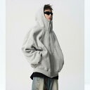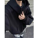 パーカー メンズ 春秋 豪華感 オーバーサイズ アメカジ ストリート 厚手 ジップアップ フード付き トップス 無地 長袖 グレー 黒