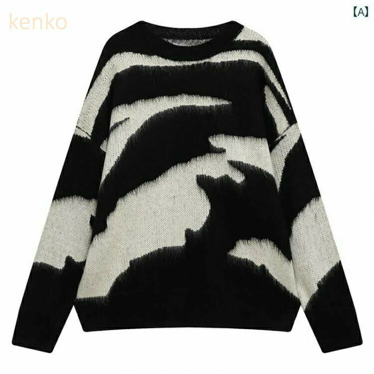 メンズ ファッション 春夏 秋冬 かっこいい オシャレ モテ 男性用 紳士服 服 韓国 シンプル 大人 ストリート アメリカン レトロ スタイル 黒 白の カジ セーター ラウンドネック