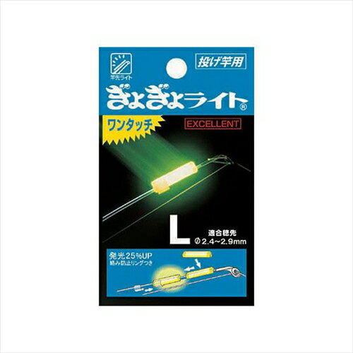 ぎょぎょライト エクセレント (S〜LL)●竿先の微妙な揺れもしっかりチェック! サイズ (mm) 重量 (g) 適合 穂先サイズ (直径/mm) 発光 時間 仕様 S 9×8×48 2.00 1.4〜1.7 4 1本入 乾燥剤入 M 10×8×48 2.42 1.8〜2.3 1本入 絡み防止リング付 乾燥剤入 L 1.44 2.4〜2.9 LL 11×9×48 2.70 3.0〜3.5 掲載商品につきましては、一部店頭在庫(実店舗)と共有している商品もございます。また、一部問屋、メーカーとの共有在庫につきましてはご注文をいただいてからお取り寄せし発送となります。「在庫有り」の表示があっても、在庫更新のタイミングのズレなどのため、ご注文後に欠品が発生する場合がございます。完売や欠品の場合は、ご注文をキャンセルさせていただく場合がございます。誠にご迷惑をお掛けいたしますが、予めご了承ください。なお、「ご注文内容の確認とお届けについてのお知らせ」メール送信後は、キャンセルを承ることが出来かねますのでご了承ください。竿先の微妙な揺れもしっかりチェック!