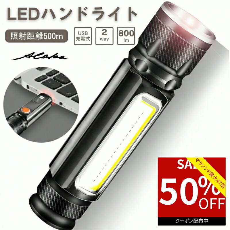 【50%オフクーポン利用で最安895円★お買い物マラソン】 懐中電灯 LED USB 充電式 ハンド ライト ハンディ 最強 フラッシュ ワーク 小型 防災 明るい 登山 アウトドア 防水 マグネット 強力 キャンプ led 1000円ポッキリ 軽量 災害 キャンプ用品 グッズ