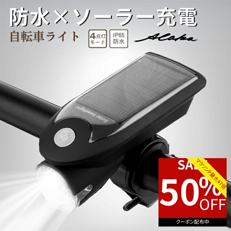 【50%オフクーポン利用で最安1,340円★お買い物マラソン】 自転車 ライト ソーラー USB LED フロントライト 自転車ライト USB充電 ソーラー充電 太陽光充電 最強 防災 4モード搭載 高輝度 防水 取り付け簡単 クロスバイク 明るい