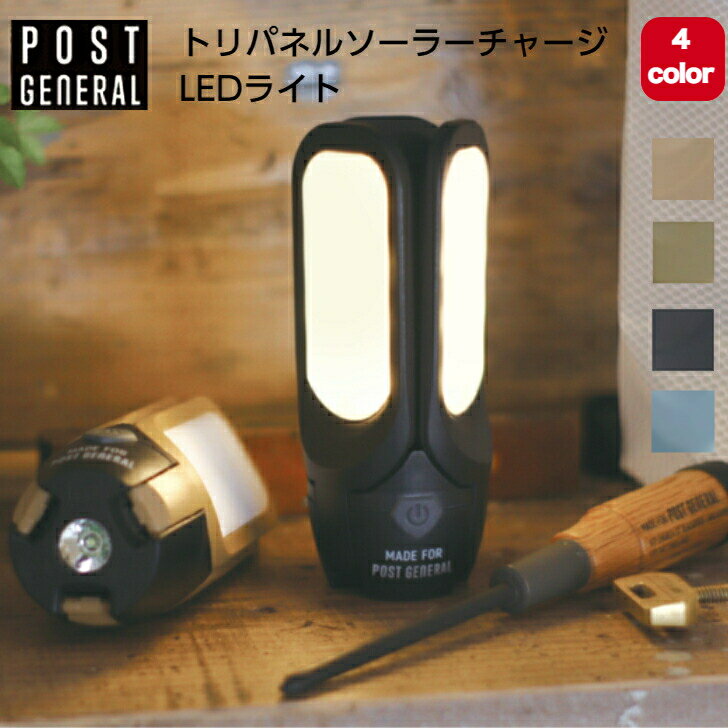 【マラソン期間P5倍+4%オフクーポン発行中】トリパネルソーラーチャージLEDライト 4色 POST GENERAL ポストジェネラル LEDランタン USB 充電式 電池不要キャンプ アウトドア 車内 車中泊 防災対策 地震対策 防災グッズ ソーラー おしゃれ