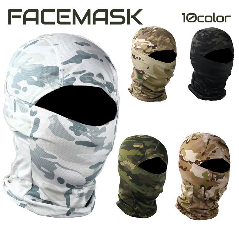 送料無料 フェイスマスク フェイスカバー 目出し帽 バラクラバ フェイスガード ネックカバー 無地 迷彩柄 通気性 アウトドア 自転車 スポーツ メンズ レディース ユニセックス