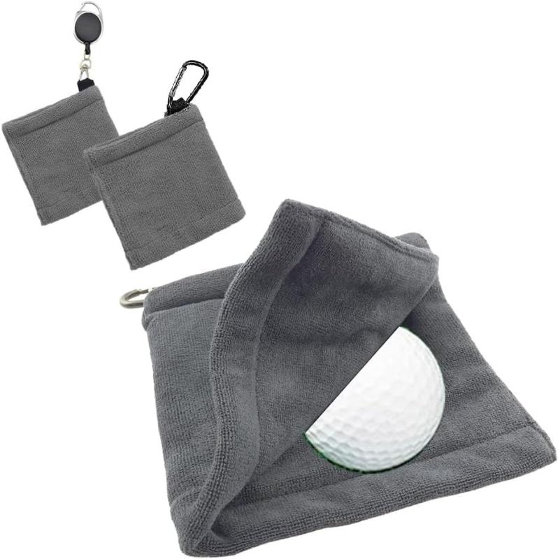 XIANFQNKJゴルフタオル2枚セットボール拭きゴルフ用マイクロファイバー吸水速乾ゴルフボール拭きゴルフクラブクリーニング用カラビナ付き携帯便利