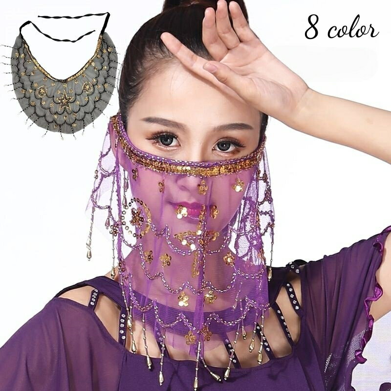 送料無料 フェイスベール ヴェール ベリーダンス アラビアンダンス 衣装 マスク チュール スパンコール キラキラ オリエンタル ステージ衣装 ダンス衣装 仮装 ハロウィン 発表会 舞台衣装 コスプレ 大人 子ども 女性 男性 レディース メンズ