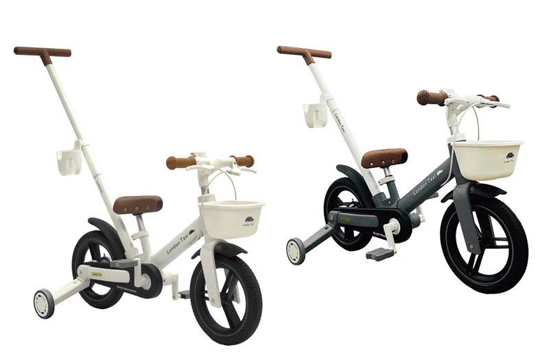 ロンドンタクシーキッズ12D【ジェフリーズジャパン】子供用自転車 キックバイク ノーパンクタイヤ かじ取り 手押し棒 カップホルダー 補助輪 前カゴ