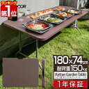 【楽天1位】【法人のみ無料配送】折りたたみ テーブル 180cm ラタン調 耐荷重150kg 奥行74cm 高さ73cm 二つ折り ガーデンテーブル 屋外 外 デスク 机 おしゃれ 折り畳み ワークテーブル 作業机 シンプル 簡単 コンパクト 1年保証 ■【個人宅配送は+1500円】