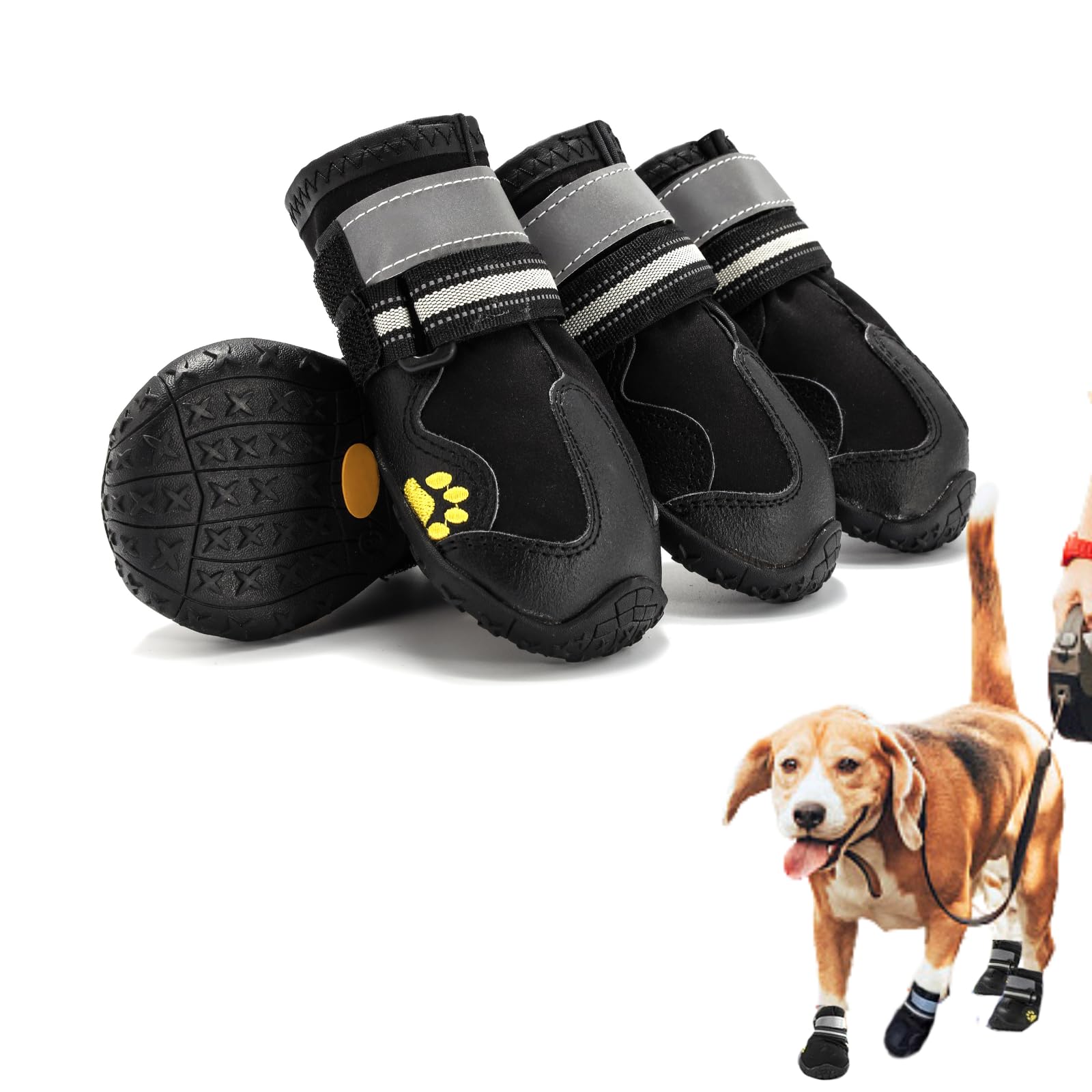 SATiNU 犬 猫 ペット 用 靴 シューズ 犬靴 ドッグブーツ ドッグシューズ 保護シューズ 滑り止め 通気性 お散歩 お出かけ 室内 肉球保護 足保護 4個セット 小型犬 中型犬 大型犬 (A4ブラック, 3XL)