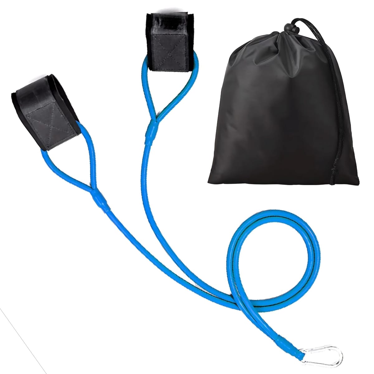 トレーニングチューブ レジスタンスバンド 専用袋つき 野球 筋トレグッズ 体幹 ストレッチ ゴムチューブ 手首装着 固定式 (ブルー, 負荷レベル:13.6kg(パワー))