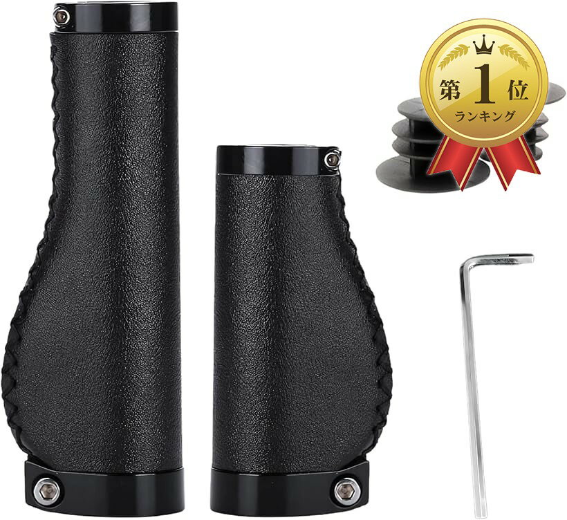 【楽天ランキング1位入賞】自転車グリップ 左右非対称 セット PUレザー エルゴグリップ ハーフショート ロング 22.2mm ロックオン式 クラシック 防水 滑り止め (ブラック, レボシフト対応)