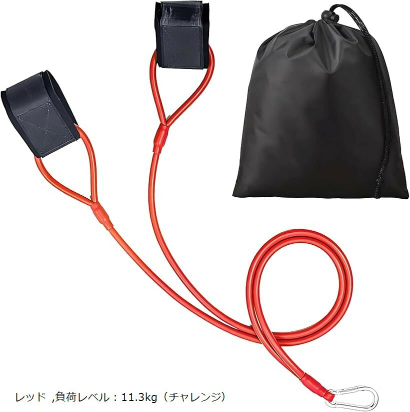 トレーニングチューブ レジスタンスバンド 専用袋つき 野球 筋トレグッズ 体幹 ストレッチ ゴムチューブ 手首装着 固定式 (レッド, 負荷レベル:11.3kg(チャレンジ))