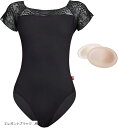 バレエ レオタード 大人 半袖 冷えにくい レース袖 胸パッド入り 練習着 シンプル 上品 レッスン ダンスウェア 発表会 衣装 エレガントブラック M