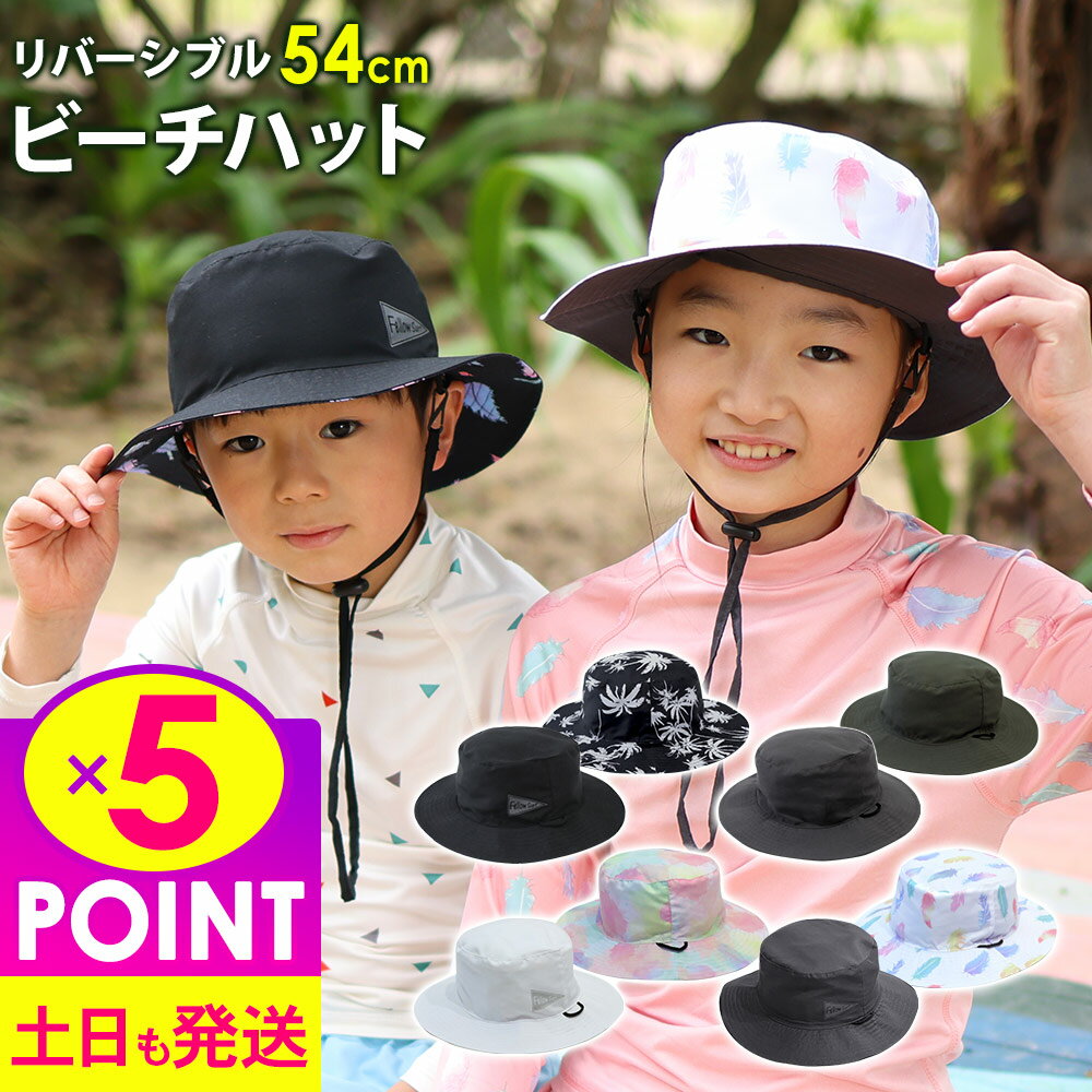 [P5倍]リバーシブルビーチハット キッズ サーフハット ビーチハット サファリハット 2way 日焼け防止 UVカット 紫外線 熱中症対策 頭周り54cm 折りたたみOK 速乾 帽子 23F-RBH3