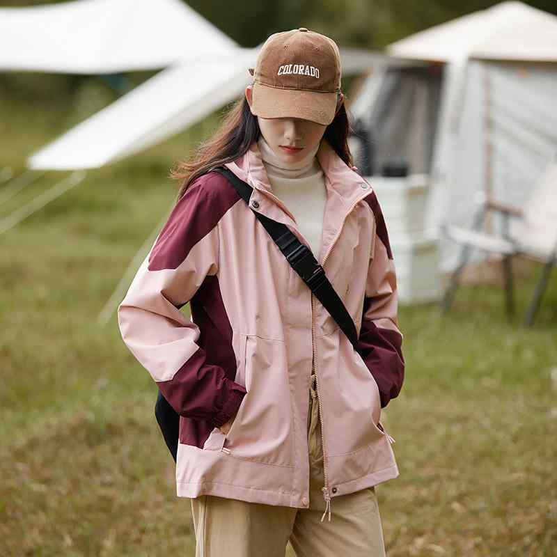 マウンテンパーカー レディース 秋物 大码 ウィンドブレーカー 配色 アウター ジャンパー ブルゾン アウトドア 登山 釣り キャンプ 深紫色/浅黒色/浅红色 S/M/L/XL/2XL/3XL
