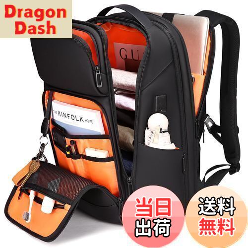 【送料無料】[FENRUIEN] リュック メンズ ビジネスリュック リュックサック 大容量 PCリュック 防水 17インチ ビジネスバッグ マチ拡張 USB充電ポート 黒 型崩れ防止 リュック 通学 通勤 出張 (ブラック)