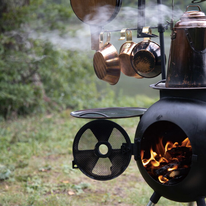 調理・料理用 薪ストーブ ポータブルファイヤーピット OZPIG FIRESIDE edition クッキング 焚き火台 煙突付 スチール製 頑丈 持ち運び オシャレ スタイリッシュ 小型 薪ストーブ 屋外 キャンプ BBQ バーベキュー キャンプストーブ Ozpig オージーピッグ 焚火台 たき火台