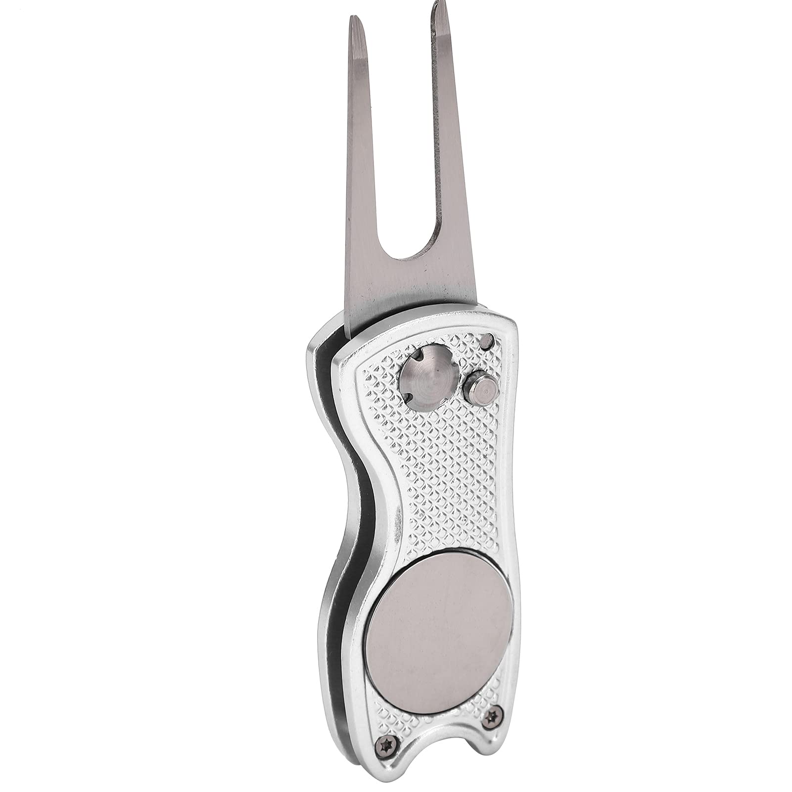 【送料無料】ゴルファーグリーンフォーク、ステンレス鋼ゴルファーフォーク金属折りたたみゴルファーディボットパッティンググリーンフォークディボット修理ツール 色:銀