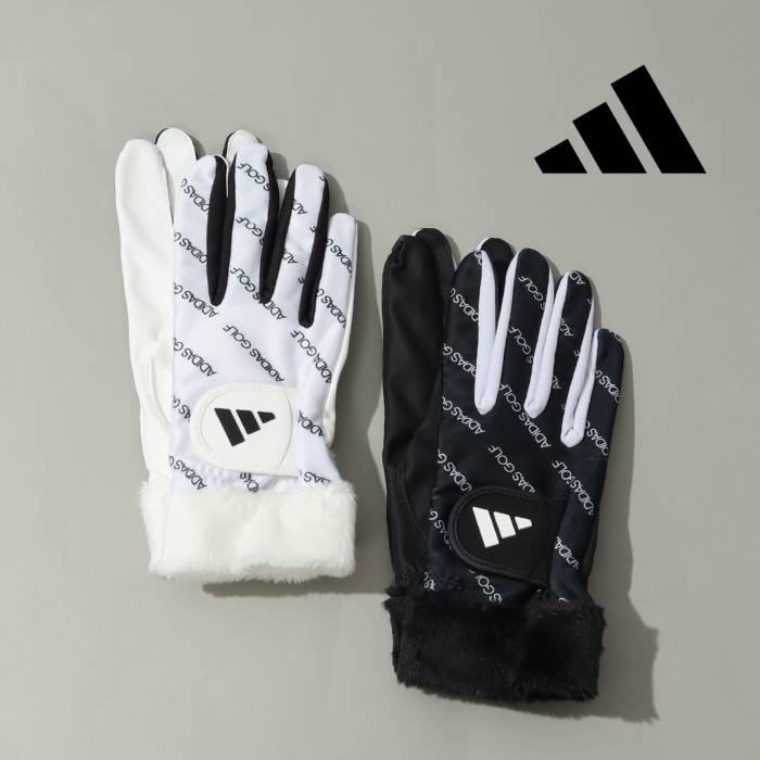 アディダスゴルフ 【保温】バイアスロゴ合皮切替ファーグローブ(両手) ゴルフウェア レディース 秋冬 ゴルフ女子 CURUCURU