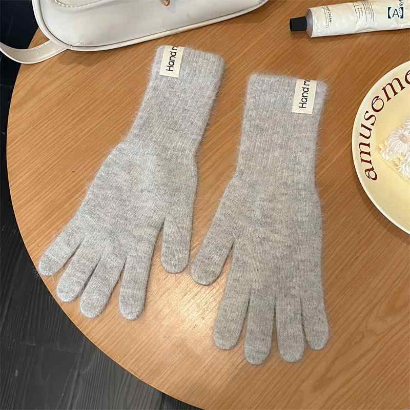 ニット手袋 キャンディカラー ロング ラビットファー グローブ 冬 レディース 韓国 ニット 無地 厚手 暖かい 防寒 サイクリング 5本 指
