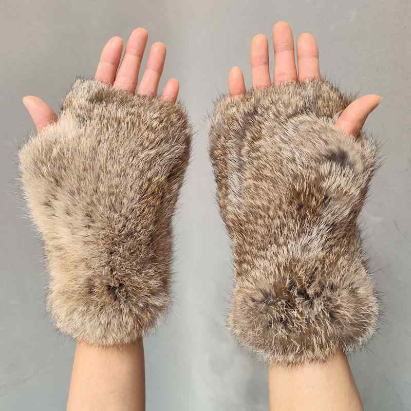 手袋 レディース 冬 ウサギ毛 編み ハーフフィンガー 保温 伸縮性 かわいい ファー グローブ 白 黒 ベージュ 軽量 普段使い