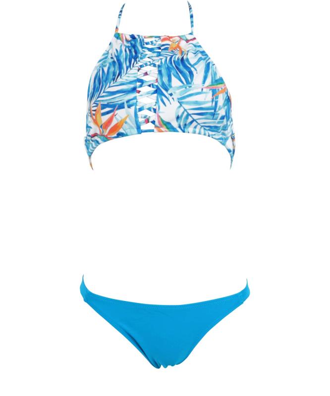 [神戸レタス] レディース ホルターネック フロント レースアップ ハイネック デザイン ビキニ [S135] ワンサイズ(M) ボタニカル